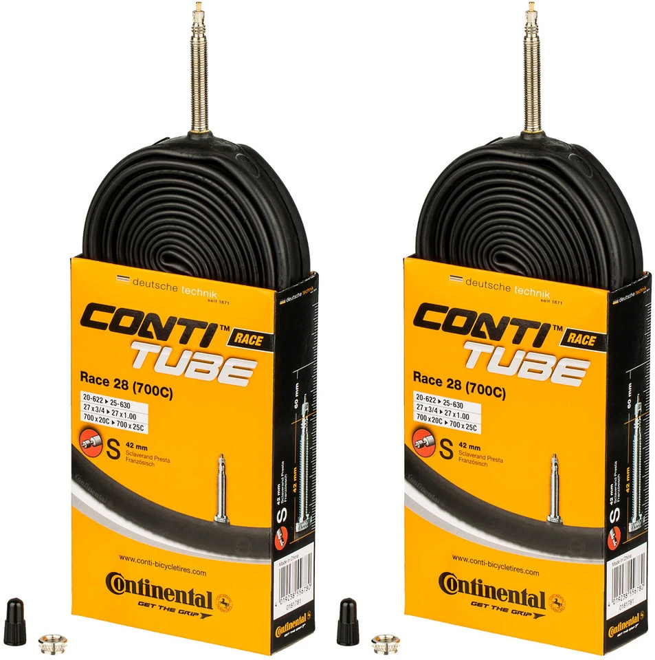 Désignation/synonymes : valve Sclaverand (SV), valve française, valve PrestaDiamètre extérieur : 6,5 mmAutres : la valve est dévissable sur toutes les chambres à air Continental avec valve SV (pour permettre l’utilisation d’un prolongateur de valve ou le remplissage avec un liquide anticrevaison, etc.).Contenu :2 x chambres à air Continental Race 28