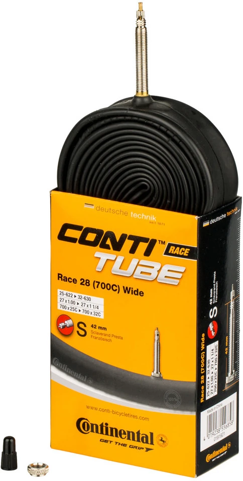 Désignation/synonymes : valve Sclaverand (SV), valve française, valve PrestaDiamètre extérieur : 6,5 mmAutres : la valve est dévissable sur toutes les chambres à air Continental avec valve SV (pour permettre l’utilisation d’un prolongateur de valve ou le remplissage avec un liquide anticrevaison, etc.).Contenu :5 x chambre à air Continental Race 28 Wide