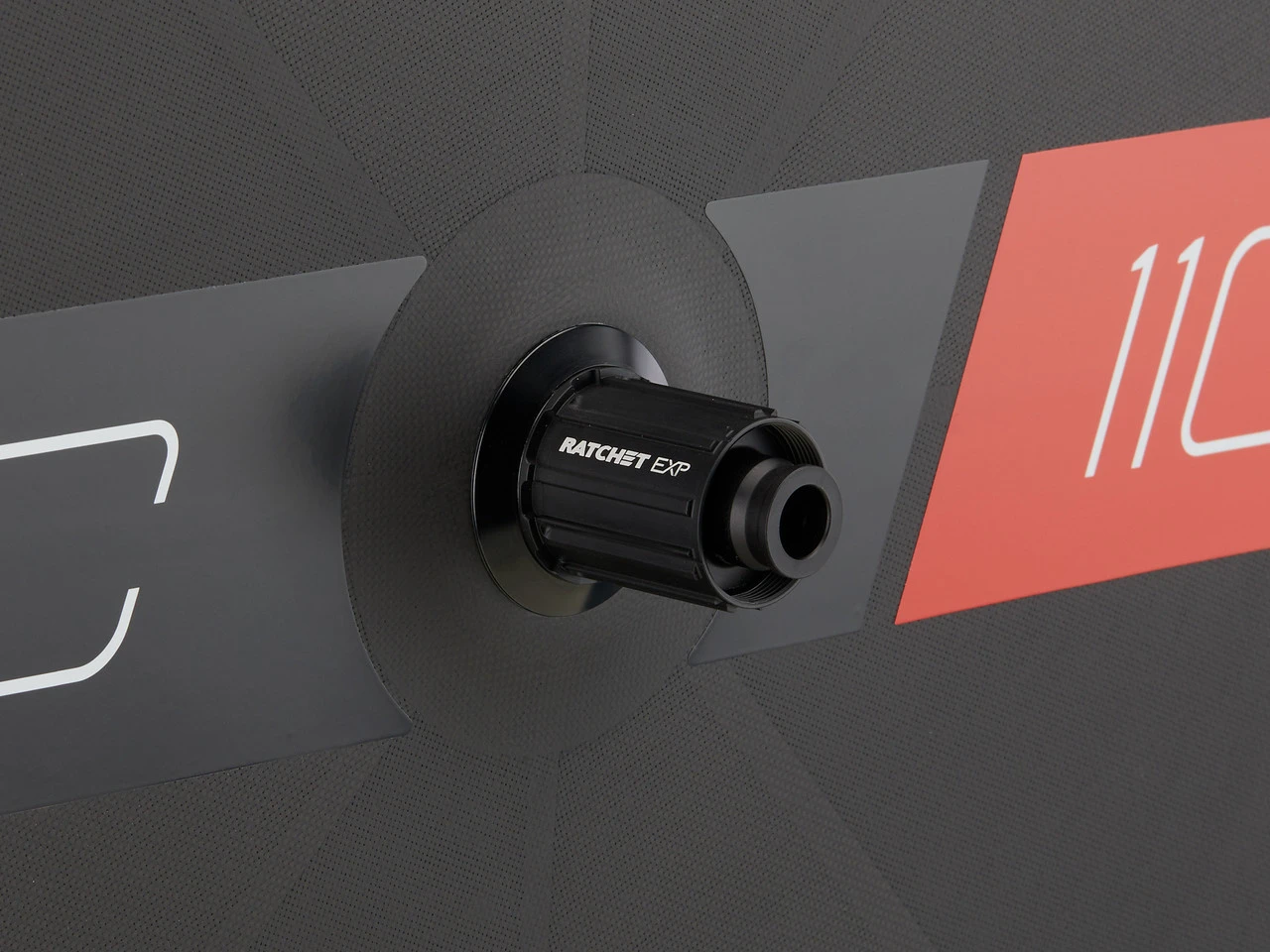 La roue est conçue pour des pneus de 28 mm de large et pèse à peine 1100 g. Tu profites également d’un « effet voile » prononcé. Du côté de la cassette, la roue est plate, laissant suffisamment d’espace pour ton dérailleur arrière. Le côté du frein a une forme légèrement convexe, ce qui répartit les forces de freinage et d’entraînement de manière optimale. Le moyeu 180 pour disques de frein Center Lock, profilé et doté d’une roue libre à disque denté Ratchet EXP garantit également une propulsion maximale. Pour permettre à la force de tes jambes de se développer le plus efficacement possible, la roue libre dispose de 36 dents qui garantissent une transmission directe de la puissance et permettent ainsi de réduire au minimum toute course à vide indésirable. Le trou de la valve est dissimulé derrière un capuchon en carbone. Tu peux l’ouvrir facilement sans outils en le faisant tourner de 90 degrés. Pour ne pas entraver l’aérodynamisme, le couvercle des trous de valve est pleinement intégré dans la paroi de la roue pleine.