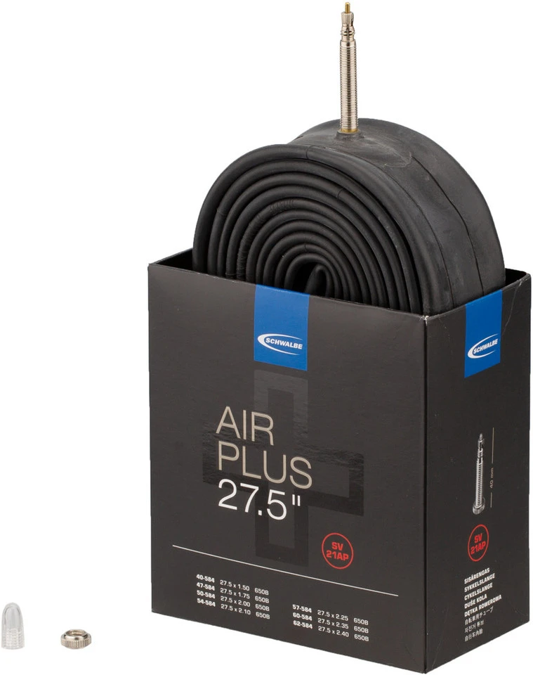Spécifications :Utilisation :City, VTT, Touring & TrekkingETRTO:40-584 à 62-584Dimensions du pneu:27,5 x 1,5 à 27,5 x 2,4Matériau de la chambre à air:butyleType de valve:SV 40 mm, AV 40 mmDimensions adaptées (ETRTO) :27,5 x 1.50 (40-584)27,5 x 1,75 (47-584)27,5 x 2.00 (50-584)27,5 x 2.10 (54-584)27,5 x 2.25 (57-584)27,5 x 2.35 (60-584)27,5 x 2.40 (62-584)Versions :27,5×1,5-2,4 SV 40 mm
