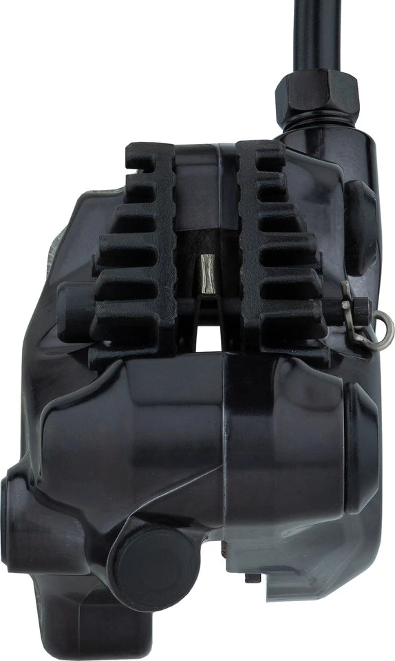 Le frein à disque est livré avec une conduite de frein et des plaquettes en résine Ice-Tech, qui permettent une dissipation de la chaleur particulièrement efficace grâce à leurs ailettes de refroidissement. Mais tu peux aussi l’utiliser avec des plaquettes conventionnelles.