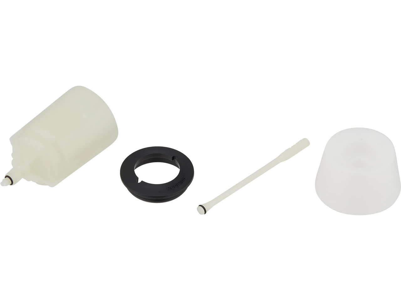 Le kit de purge par entonnoir TL-BR003 contient toutes les pièces nécessaires du côté émetteur pour la purge des nouveaux systèmes de frein à disque Shimano avec levier de frein de type BL. Ces leviers sont courants dans le domaine du VTT et de la randonnée et disposent d’une vis de purge avec un filetage M5. L’entonnoir à huile TL-BR003 est directement fixé à cet endroit après avoir retiré le joint torique. Dans certains cas, par exemple sur certains vélos de ville, il existe également des leviers de frein ST avec un raccord M5. Ce kit peut alors également être utilisé. L’entonnoir convainc par son volume généreux et est fait d’un matériau synthétique solide et durable. Le kit comprend également un couvercle et un bouchon d’huile pour éviter les fuites d’huile minérale lors de la purge.