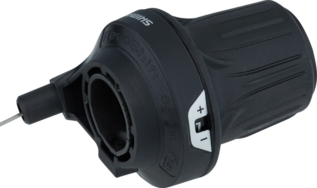 Les leviers de vitesses Shimano Revoshift doivent simplement être tournés entre le pouce et l’index pour changer de vitesse, ce qui permet de maintenir le guidon fermement en main Ce mode de changement de vitesse simple et sûr convient particulièrement aux cyclistes occasionnels et aux enfants. La forme en escalier du commutateur rotatif permet de l’actionner facilement, quelle que soit la taille de la main.