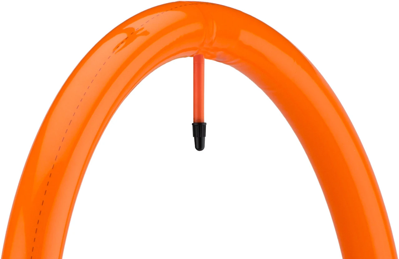 À l’extérieur du pneu, ta chambre à air tubolito ne doit jamais être remplie avec une pression supérieure à 0,5 bar. Sinon, la tubolito risque de trop s’étirer ou même d’éclater.